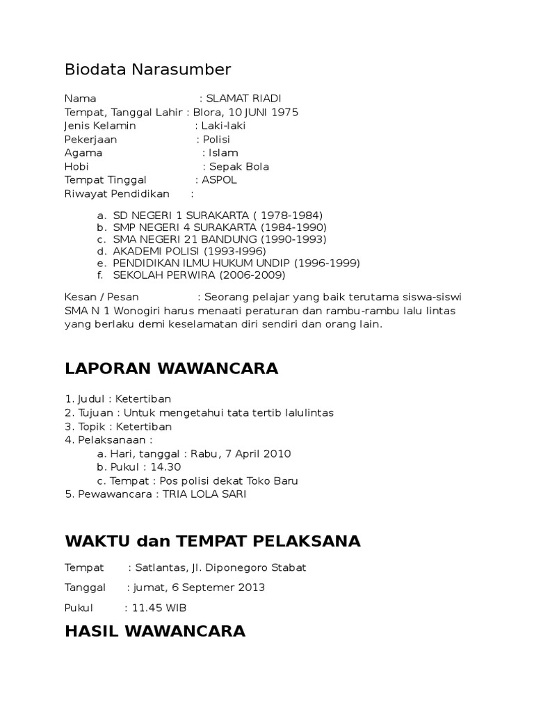Contoh biodata narasumber. Contoh Fakta Umum Fakta Khusus Dan Opini. Contoh Laporan Ad Hoc. Haiiii gaisssss D Kali ini gue mau kasih contoh Narasi Biodata Penulis.