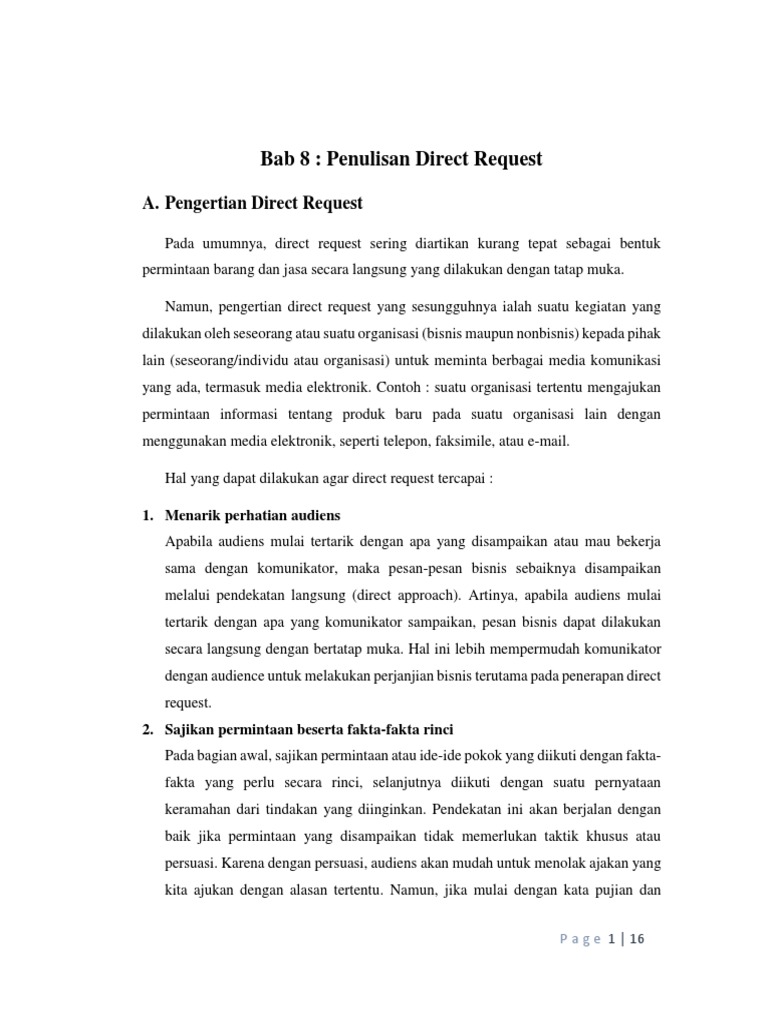 Contoh Surat Direct Request Dalam Komunikasi Bisnis Kumpulan Surat Penting
