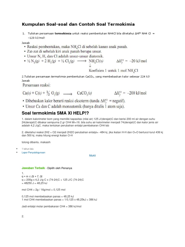 Contoh Soal Dan Pembahasan Termokimia Docx