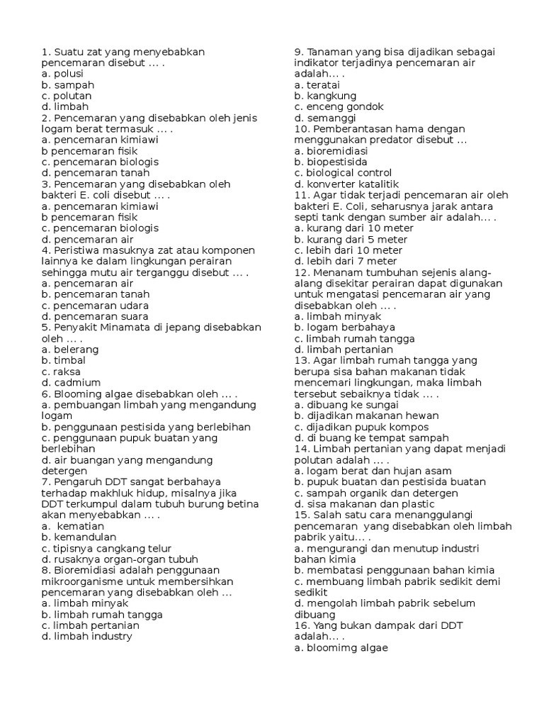 Pencemaran Lingkungan Smp 7 Soal