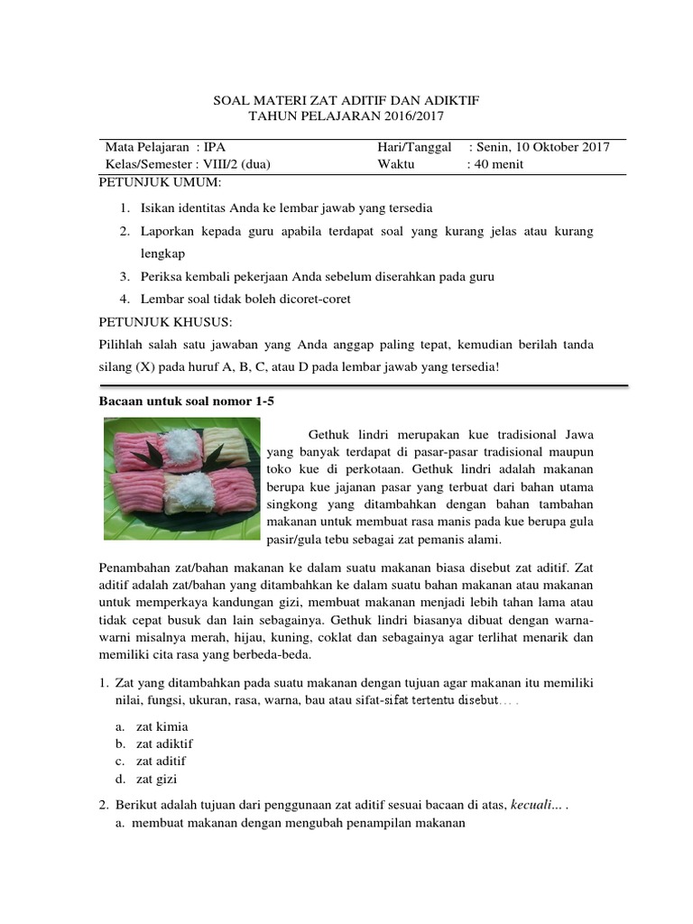 Soal Materi Zat Aditif Dan Adiktif Docx