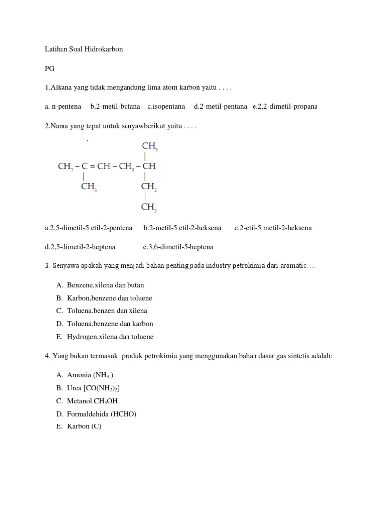 Kumpulan Soal Hidrokarbon Dan Jawabannya