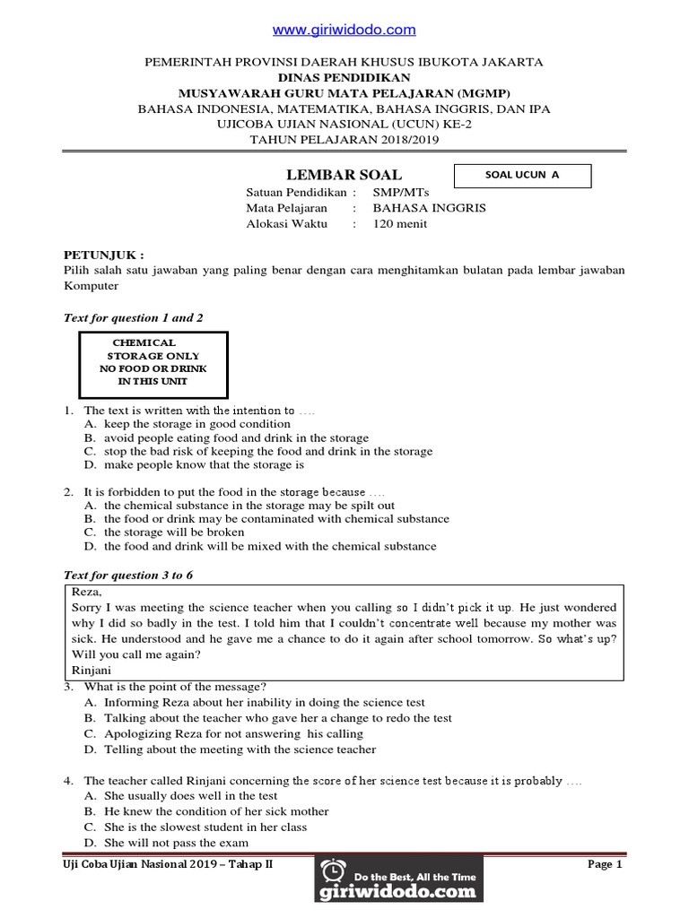 Download Soal Ucun Dki Jakarta Tahun 2019 Tahap 2 Ipa Giri Widodo