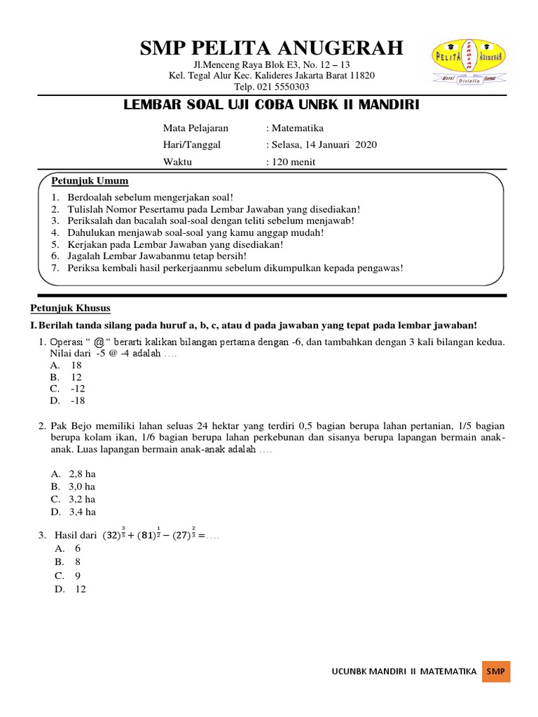 Soal Dan Kunci Balasan Ucun Smp Se Dki Tahun 2020 Ucun I Dan Ucun Ii Sch Paperplane