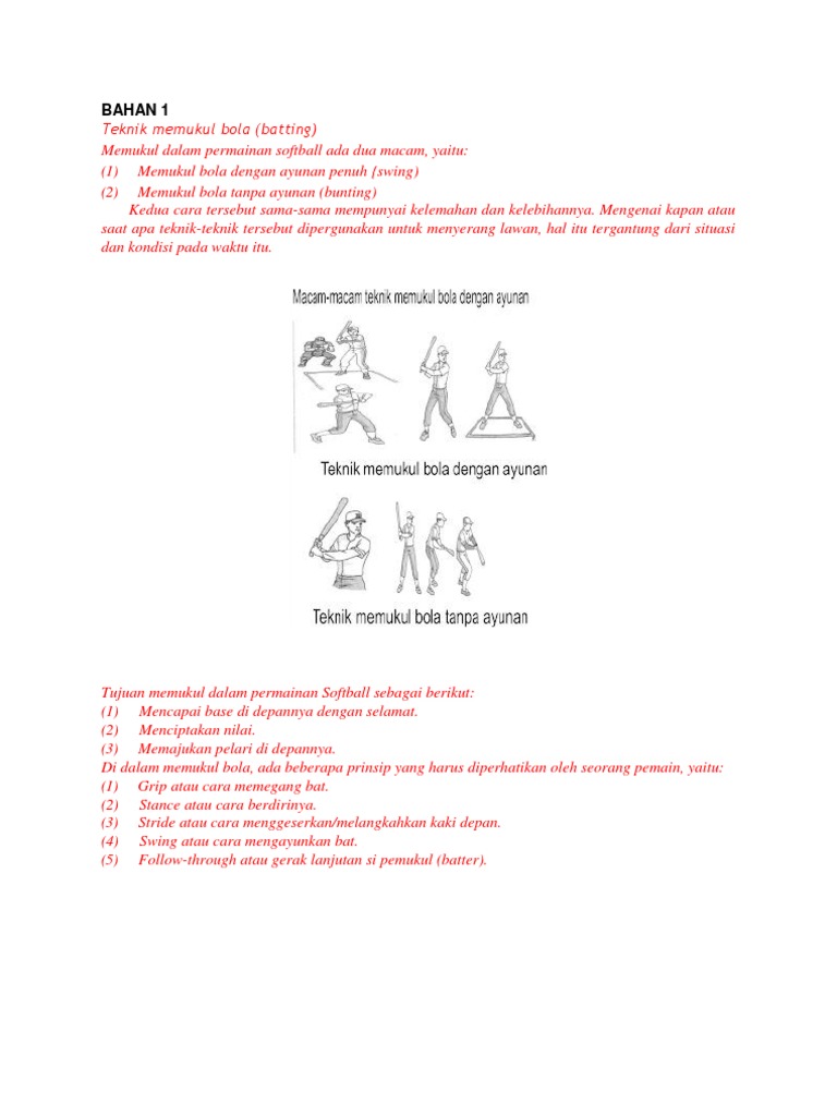 Bahan 1 Teknik Memukul Bola Batting Memukul Dalam Permainan Softball Ada Dua Macam Yaitu